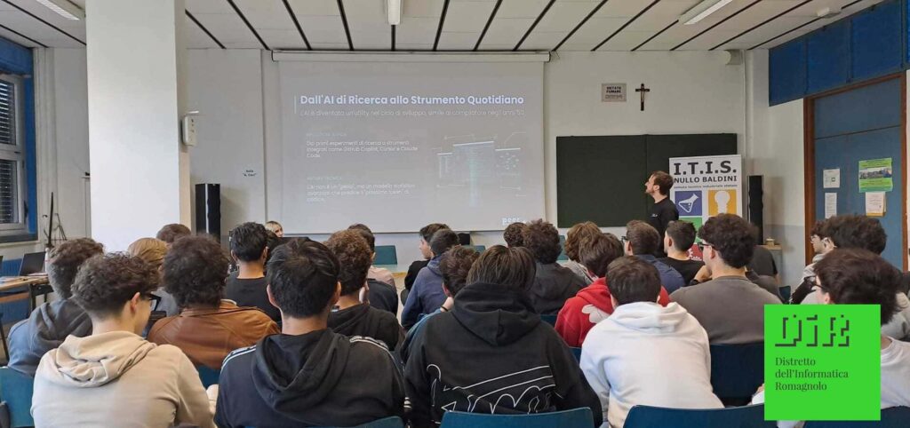 Lunedì 27 aprile 2026 l’ITIS Nullo Baldini di Ravenna ha ospitato, in collaborazione con il Distretto dell’Informatica Romagnolo, una mattinata dedicata all’incontro tra scuola e aziende.